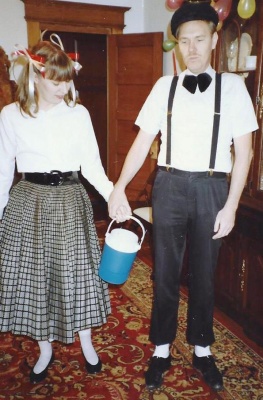 As I was trying to figure out what I should be this Halloween if I was going to a party, I thought it would be fun to get some ideas from photos of past Halloweens and the different costumes people wore.  Wooden Soldier, Jack & Jill, Geisha Girl, Scarecrow, Little Orphan Annie, Colonial Gentleman, Pirates, Cheerleader, Pajama Girl, Clown.  You don't have to rent or buy a costume for Halloween.  Everything you need to reinvent yourself into a "character" is probably in your own closet (or at a thrift store).  Have a fun, spooky and safe Halloween!