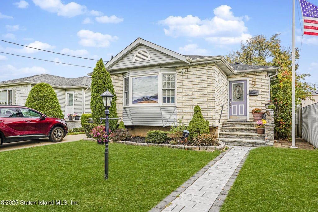 First time on the market! This detached 3-bedroom, 2-bath ranch sits in one of Staten Island's best South Shore locations and includes a finished basement. Beautiful curb appeal with a newly redone front entryway. A large bay window fills the living and dining rooms with natural light. Oak floors lie beneath the carpeting throughout the home. The recently renovated open-concept kitchen features granite countertops, a center island, stainless steel appliances, and custom cabinetry, with convenient access to the side yard. The finished basement offers a bar area perfect for entertaining, a spacious family room, a workshop, and a utility/laundry room equipped with a new HVAC system and a new hot water heater. The home is equipped with surround sound, interior cameras, and a full security system for added peace of mind.Featuring a brand-new roof with solar panels, this home also offers a fully fenced yard with a Trex deck, outdoor gas BBQ, refrigerator, fire pit, beer dispenser, and shed. Come see this beautiful home and make it yours!