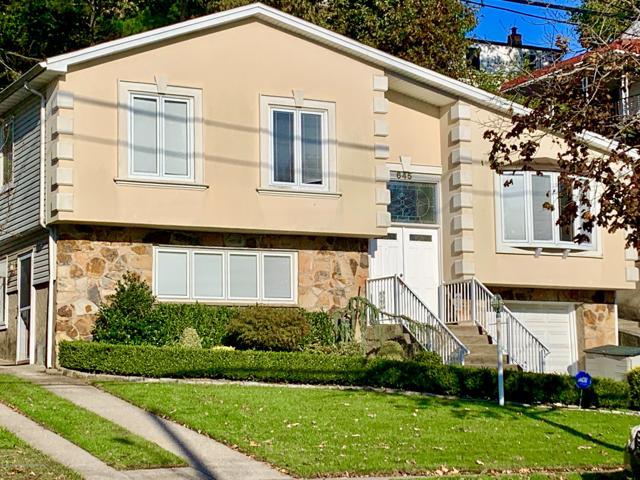 If you are looking for a premier location as well as an updated large home with a flexible floor plan, then welcome to this large broadside raised ranch in Grasmere. Situated on the million dollar street of Fingerboard only a minute from the VZ bridge and express buses to Manhattan, it offers the best commute on Staten Island. The home is recently updated with a stucco and stone front facade, mature landscaping, two driveways for ample off street parking and a large storage shed. The pavered and terraced backyard offers a tranquil retreat with amazing sunset views. Step inside through the beautiful double door entry with stained glass transom and marble stairs leading to the light filled upper level of the home.There you will find a large living room dining room with gleaming hardwood floors and cathedral ceilings as well as granite kitchen with skylight and door to the yard. A few steps up leads you to 3 bedrooms and a fully tiled bath with granite and a whirlpool bathtub. The lower level of the main home offers additional living space, laundry and utility room plus an additional bathroom. Another part of the lower level, with an entrance from the outside